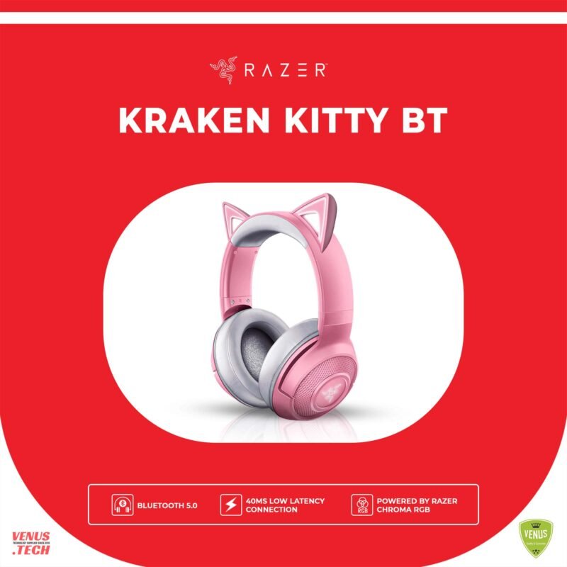 Razer Kraken Kitty V2 – Wired RGB Headset with Kitty Ears (Stream Reactive Lighting, HyperClear Cardioid Mic, Triforce 40mm Drivers, 7.1 Surround Sound) Quartz Pink-RZ04-04730200-R3M1