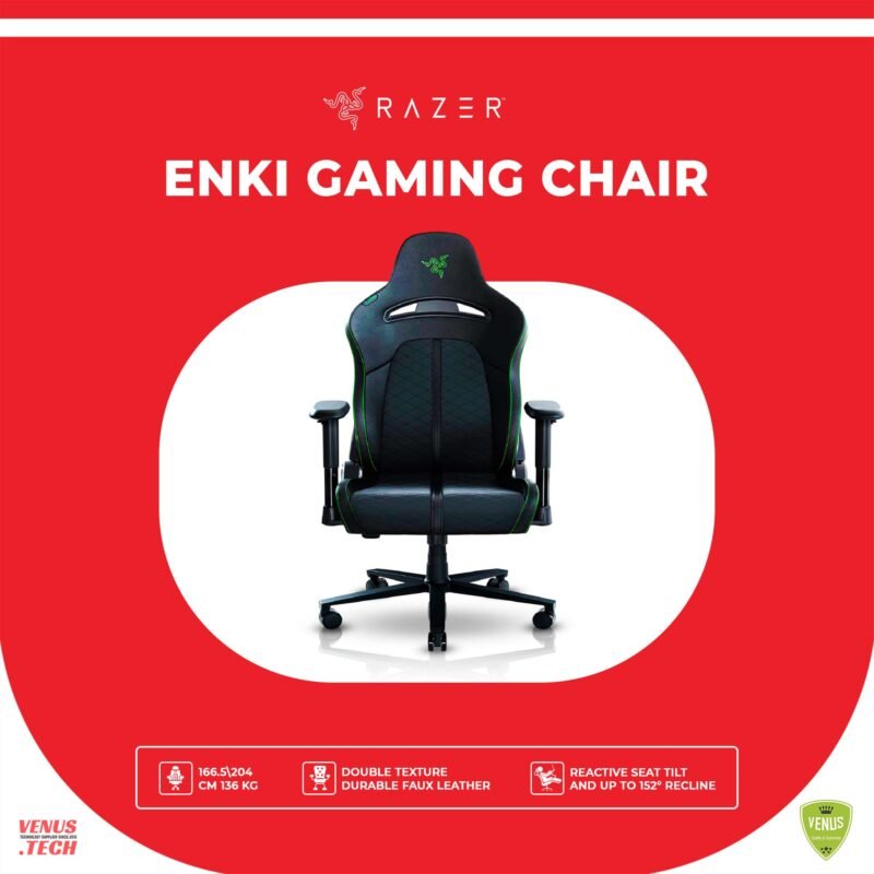 Razer Enki Gaming Chair: All-Day Gaming Comfort – Built-in Lumbar Arch – Optimized Cushion Density – Dual-Textured, Eco-Friendly Synthetic Leather – Reactive Seat Tilt & 152-Degree Recline – Black