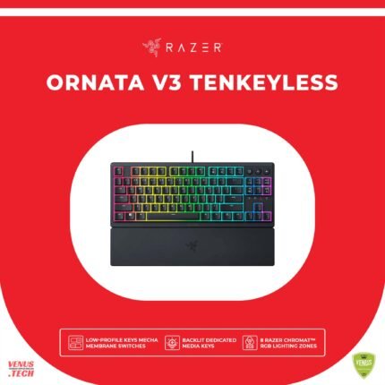 Razer Ornata V3 Tenkeyless – Low Profile Gaming Mechanical Membrane Wired Keyboard-Black-RZ03-04880100-R3M1